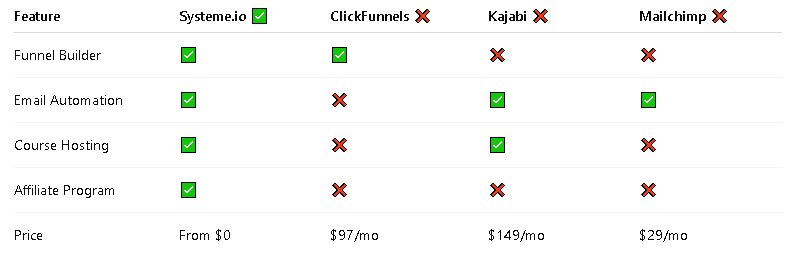 Paying for multiple tools (ClickFunnels, Mailchimp, Teachable, Zapier) β too expensive.